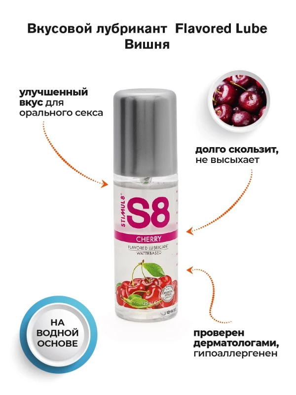 Восхитительный гель с ароматом и вкусом вишни на водной основе "Stimul 8 Cherry" - идеальная немецкая классика для самых чувственных моментов!