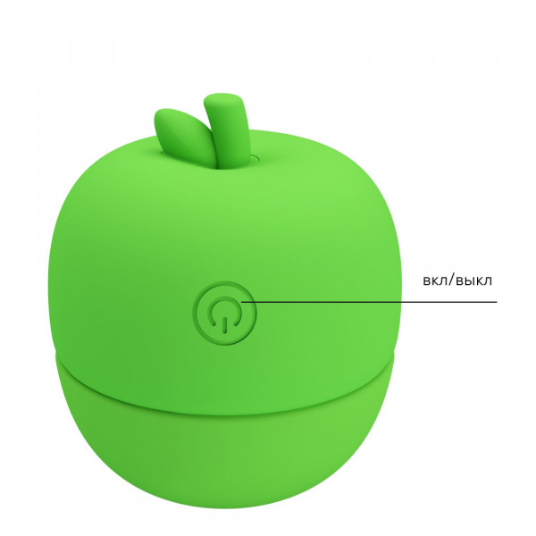 Выполнен стимулятор из медицинского силикона в виде зеленого яблока. Крышка яблока выполнена из высококачественного ABS-пластика